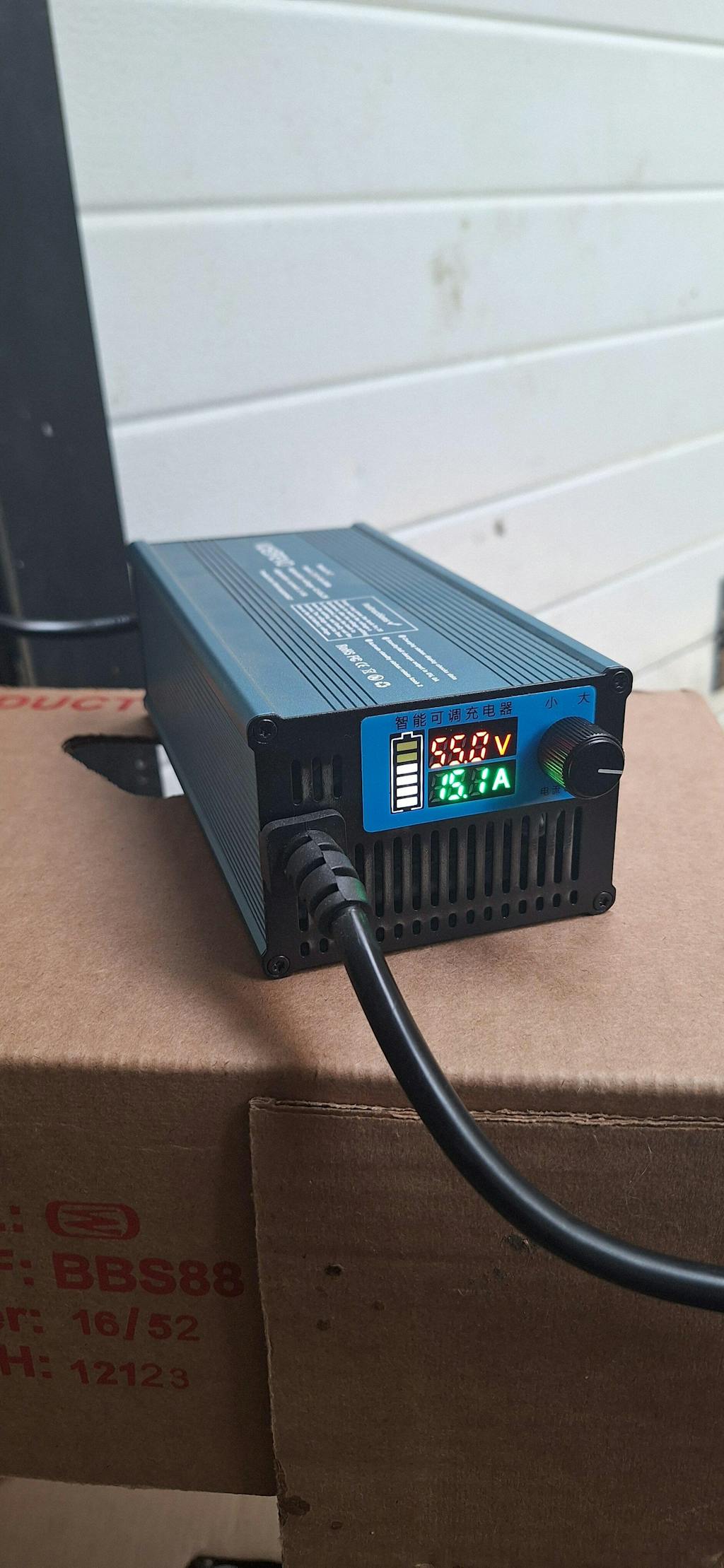 To inteligentna ładowarka z regulowanym prądem i napięciem, która oferuje zakres prądu ładowania od 2A do 15A z bezstopniową regulacją i regulowanym napięciem ładowania od 42V do 88,4V.